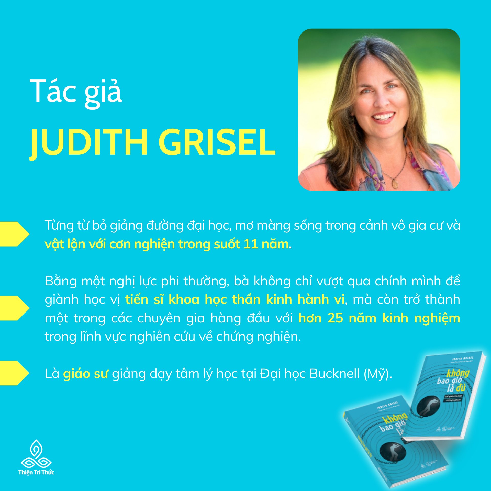 Judith Grisel là một trong những nhà khoa học thần kinh hành vi hiếm hoi có thể kết hợp trọn vẹn hai thế giới: thấu hiểu tận gốc rễ cơ chế sinh học, tâm lý của chứng nghiện và cảm nhận trọn vẹn nỗi thống khổ của một người từng chìm trong vòng xoáy nghiện ngập tưởng chừng không lối thoát.